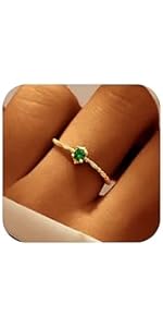 Aavoein Emerald Green CZ Promise Ring for Women 925 Real Silver Stackable Bir...